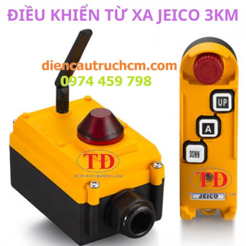 Điều khiển từ xa Jeico 3KM điện áp 12-40V bao gồm bộ thu sóng và bộ phát sóng dùng để điều khiển palang, cầu trục, xe cẩu, cửa cổng tự động, hệ nâng thuỷ lực.